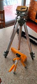 cavalletto in alluminio medio grande con segni di usura e con una rotella di regolazione smezzata
