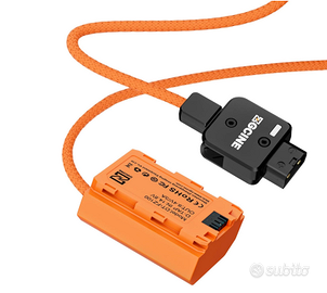 Vendo cavo batteria fittizia nuovo, mai aperto per inutilizzo. Sostituzione per fotocamera Sony con batteria FZ100. Alimentazione tramite batteria V Mount, piastra V-Mount o altro dispositivo con uscita D-Tap. Tensione di ingresso: 12 V - 17 V Tensione di uscita: 8 V (regolata) Dimensioni cavo: 60 cm Compatibile con i seguenti modelli di fotocamera Sony NP-FZ100: Sony Alpha A7III, A7 III, A73 Sony Alpha A7IV, A7 IV, A74 Sony Alpha A7SIII, A7S III, A7S3 Sony Alpha A7RIII, A7R III, A7R3 Sony Alpha A7RIV, A7R IV, A7R4 Sony Alpha A7RV, A7R V, A7R5 Sony Alpha A1 A6600 A6700 ZV-E1 Sony Alpha FX3, FX30, A7C Sony Alpha A9, A9S, A9R, A9 II
