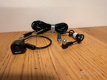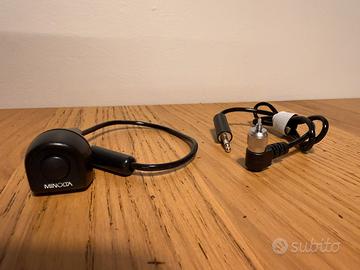 Cavo scatto flessibile vintage per fotocamere reflex a pellicola Minolta serie X, con prolunga di circa 4,4metri, per un tot di circa 5,20 m. Si avvita alla filettatura coassiale al pulsante di scatto. Ottime condizioni estetiche, non testato non avendo la fotocamera adatta. Per ricerca: fotocamera, fotografia notturna, lunghe esposizioni, tempi di scatto, paesaggi.