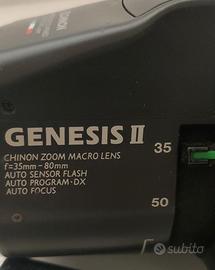 Chinon Genesis macchina fotografica analogica. Dotata di funzionalità macro. Completa di custodia con tracolla.