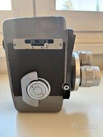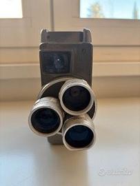 Cinecamera vintage formato 8 mm con turret a 3 lenti. Le ottiche sono Wizner (Made in Japan), incise sui bordi. Numero sul corpo: WA070589.