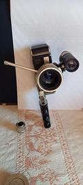 cinepresa 8 millimetri della PAILLARD BOLEX con impugnatura a maniglia e teleobbiettivo con relativo puntatore separato a corredo della cinepresa libretto di istruzione relativo allo zoom e al puntatore viene venduto insieme anche obiettivo di normale utilizzo.