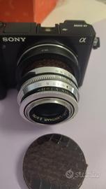 Voigtländer 50mm f2.8 Color-Lanthar, personalizzato con rivestimento in pelle, attacco e-mount. ottime condizioni. usato pochissimo