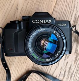 Macchina Contax 167 MT perfettamente funzionante revisionata e pulita . Obiettivo Yashica MC zoom 35/70mm 1:3.5 -4.5 Batterie nuove. Verificabile con il tecnico del laboratorio fotografico.