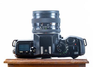 Esposizione: manuale, automatica a priorità di diaframmi, a priorità dei tempi e 3 programmi - Misurazione della luce: TTL a misurazione media con prevalenza centrale e spot con blocco della memoria - Gamma Esposizione: da EV 0 a EV20 con pellicola 100 ISO ed obiettivo 1,4 - Sensibilità: da 6 a 6400 ISO - Mirino: copertura 95% - Otturatore: a tendina verticale controllata elettronicamente, sincroX 1/125 - Tempi di otturazione: da 1/4000 a 16 secondi e posa B - Alimentazione: 4 ministilo da 1,5 volts - Innesto obiettivi: Contax/Yashica - Dorso: intercambiabile - Dimensioni: mm 149x91,5x51,5 - Peso: gr 620 (solo corpo). Varie: Motore incorp. da 3 fot/sec. per l'avanzamento ed il riavvolgimento del film. Possibilità di inserire un normale scatto flessibile nella presa di quello elettromagnetico. Pulsante di profondità di campo. Schermi di messa a fuoco intercambiabili. Non è autofocus.