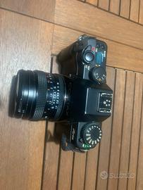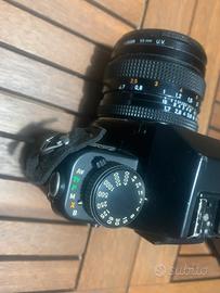Contax Aria Reflex Analogica motorizzata tempi fino 1/4000s. Viene fornita dotata di obiettivo Carl Zeiss 50mm f 1.7 made in Japan.