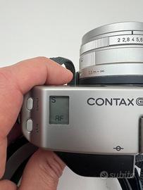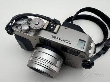 Contax g1 con Planar 45mm green label versione del 150 anniversario. Obiettivo perfetto, macchina bella con un segnetto/colpetto impercettibile al tatto e alla vista sullo sportello posteriore e un piccolo puntino nero nel display dove viene visuallizato il numero degli scatti. Funzionamento perfetto, AF preciso e corrispondente alla giusta distanza. Avanzamento della pellicola perfetto, mirino limpido. Spedisco solo con UPS O BARTOLINI, no poste. Si prega di selezionare nell'elenco al momento del pagamento il giusto corriere. Ritiro di persona accettato.