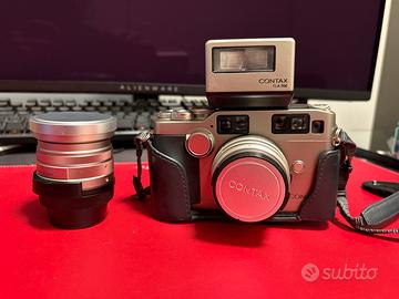 Vendo splendida Contax G2 in ottime condizioni, perfettamente funzionante. Corpo macchina iconico della fotografia analogica, con autofocus preciso e costruzione di altissimo livello.  Dotazione: •Obiettivo Carl Zeiss Biogon 28mm f/2.8 •Obiettivo Carl Zeiss Planar 45mm f/2 •Flash originale Contax TLA 200 •tappi / custodia Vendo per inutilizzo