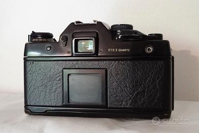 La Contax RTS II Quartz (prodotta a partire dal 1982) abbinata al Carl Zeiss Planar 50mm f/1.4 rappresenta uno dei vertici assoluti della fotografia analogica reflex a 35mm. Unisce l'ingegneria elettronica giapponese di Yashica alla ottica tedesca di Zeiss. L'otturatore è controllato da un cristallo di quarzo, garantendo una precisione millimetrica dei tempi di scatto. Il mirino offre una copertura del 97% e un display LED molto chiaro che indica i tempi di posa. Dotata di otturatore Meccanico d'Emergenza: permette di scattare a 1/50 di secondo anche se le batterie sono scariche. Design Porsche. La reflex perfettamente funzionante e dotata di libretto di istruzioni originale dell'importatore italiano (Fowa Torino) è corredata da due obiettivi Yashica da 28/2.8 e 135/2.8.