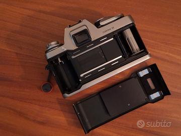fotocamera analogica a pellicola solida, robusta ma elegante e con grande carattere. uscita nel 1992 assieme alla diversa ST, dopo il successo della costosissima ammiraglia RTS III. come forma e dimensione potrebbe ricchiamare la storica 139 quartz ma questo progetto è una un'altra cosa. corpo in titanio, totalmente meccanica ( macchina ETERNA), l'elettronica è ridotta al solo esposimetro). esposimetro con misurazione spot, possibilità di esposizioni multiple, tempi fino a 1/4000s, mirino ampio e luminoso, con possibilità di sostituire i vetrini di messa a fuoco. viene venduta con: - tappo corpo - batterie - copia cartacea manuale di istruzioni in italiano - cinghia originale contax (non visibile in foto) - ancor links della peaks design visibili in foto. - REGALO obiettivo 200mm Yashica ML ottime condizioni con tappi originali. NO Carl Zeiss T* (non presente in foto) le condizioni sono come si vede in foto. la macchina è PERFETTAMENTE FUNZIONANTE in tutte le sue parti. IMPECCABILE
