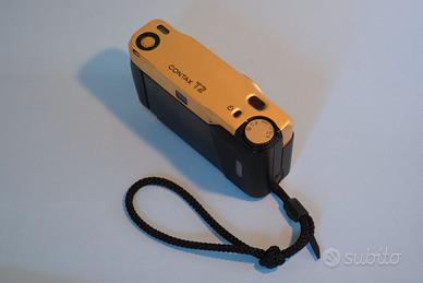 Vendo macchina fotografica analogica Contax T2 Gold 60th anniversary. La macchina fotografica è in ottimo stato meccanico e ha pochissimi segni d'uso. Gli elementi ottici sono privi di graffi o muffa e la macchina fotografica è perfettamente funzionante. Insieme al corpo macchina vendo la custodia originale Contax, il panno in microfibra e il cofanetto di legno.