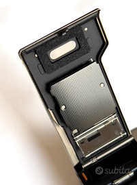 Metto in vendita questa Contax T3, la celebre compatta 35 mm di fascia alta realizzata da Contax/Kyocera con ottica Carl Zeiss T* (“Sonnar” 35 mm f/2.8) e corpo elegante. La macchina ha avuto una vita attiva (ha “lavorato molto”), e presenta segni e caratteristiche da prendere in considerazione, ma è perfettamente funzionante. Condizioni e particolarità importanti da segnalare (per chi acquista consapevolmente): Manca la palpebra frontale. Nel mirino è presente della polvere – visibile nel mirino stesso ma non sul fotogramma. L’ottica risulta in buone condizioni, senza evidenti deterioramenti che ne compromettano la resa, ne muffe! Il flash integrato funziona regolarmente. Tutte le funzioni principali – avanzamento pellicola, otturatore, autofocus, esposizione – sono operative (nessun difetto noto al momento, salvo quanto sopra). Esteticamente il corpo presenta segni d’uso coerenti con l’età e l’utilizzo: abrasioni, micro-graffi o tracce dell’attività svolta! La Contax T3 è unanimemente riconosciuta come una delle migliori compatte analogiche della sua categoria: corpo in materiali pregiati, ottica Zeiss di alto livello, handling raffinato. Nonostante l’usura e l’anomalia segnalata (palpebra mancante, polvere nel mirino), rappresenta un’opportunità per chi desidera una macchina d’epoca con funzionalità operative, sapendo di acquisire un oggetto che ha già vissuto e che richiede consapevolezza. Inoltre visto il prezzo ridotto rispetto al suo valore, con un check up tornerebbe ad avere un valore più alto. Dettagli tecnici: Formato: 35 mm (24×36). Ottica: Carl Zeiss T* Sonnar 35 mm f/2.8. Minima distanza di messa a fuoco: 0,35 m. Condizioni di spedizione e invio: Spedizione sicura con imballaggio adeguato, pagamento via piattaforma Subito o secondo accordi. Acquirente consapevole delle condizioni così come descritte. La merce non torna indietro!