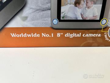 Cornice digitale 8'' con fotocamera incorporata Converte le foto tradizionali su carta in immagini digitali Permette di vedere foto con alta risoluzione fino a 16 MP Cavo elettrico e anche batterie Li-Ion per uso portatile Misure del prodotto Larghezza: 35 cm Profondità: 22 cm Altezza: 7 cm