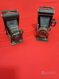 Coppia di macchine fotografiche a soffietto degli anni '30, prodotte negli stabilimenti Kodak di Stoccarda dal 1934 al 1939. Modello Vollenda 620, con otturatore centrale meccanico Compur , doppio mirino per l'inquadratura, e modello Junior. Ben conservate