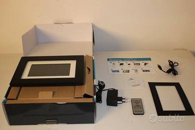 Cornice digitale Pandigital 7 inch 4000 512 mb con scatola originale, completa di telecomando,bordi cornice bianco e grigio scuro, adattatore CA, cavo USB,guida utente (cd)e guida rapida. Caratteristiche: -schermo lcd 7" -memoria interna da 512 MG(conserva fino a 4000 foto) -cornice nera moderna -include bordi bianco e grigio scuro -orologio e calendario -risoluzione 480x234 -lettore scheda 5 in 1 -SD/MMC/MS/MSPro/XD -funzionamento completo in modalità remota -accensione e spegnimento programmabili