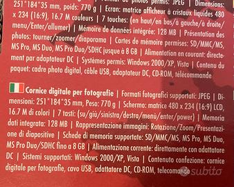 Cornice digitale per foto dimensioni 25,1 x 18,4 x 3,5 cm. Prodotto nuovo, mai usato. Prodotto in confezione originale, mai utilizzato.