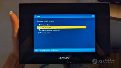 Cornice digitale Sony S-Frame in vendita, usata pochissimo e perfettamente funzionante. Si accende senza problemi, riproduce foto e video e svolge esattamente la sua funzione come porta foto digitale. Esteticamente si presenta in buone condizioni: sono presenti solo alcuni lievi segni superficiali sul fronte, poco visibili e dovuti al normale utilizzo. Per il resto è ben tenuta. È un oggetto ormai non più così comune, quasi “vintage digitale”, ideale per chi vuole un’alternativa originale alle classiche cornici. Perfetta da posizionare su una mensola, una cassettiera o una scrivania, aggiunge un tocco personale e dinamico agli ambienti mostrando i tuoi ricordi in formato digitale. La vendo semplicemente perché non la utilizzo più, ma è un prodotto ancora valido, funzionale e anche molto simpatico come idea regalo o complemento d’arredo.