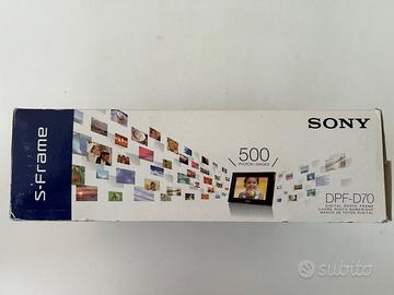 Vendo cornice elettronica SONY S-FRAME, mod. DPF-D70, per foto digitali 17,8 cm (7"). Dimensioni schermo: 17,8 cm (7"). RAM installata: 256 MB, Tipi schede di memoria: MicroDrive, MMC, SD, xD. Larghezza: 152 mm, Profondità: 91 mm. Nuova, mai usata, in scatola originale. Spedizione o ritiro a carico dell’acquirente.