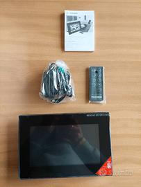 Caratteristiche tecniche: Schermo 7", dimensione 208x140x25,34mm, risoluzione 480x234 pixels, compatibile con JPEG, telecomando, compatibile con MS/SD/chiave USB, visualizzazione multipla, effetti di transizione regolabili.