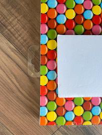 Il portafoto è realizzato con un pannello rigido dello spessore di 1cm sul quale sono fissati i supporti per le Polaroid. I supporti hanno lo spessore di 4 mm.