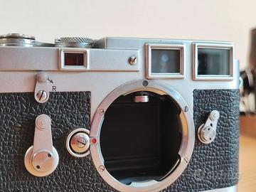 Vendo macchina fotografica 35mm analogica Leica m3 con custodia originale e tappi. Numero di serie 921625. Perfettamente funzionante, e appena revisionata da un noto riparatore di Bologna. L'otturatore è silenzioso, i tempi perfetti e tarati, anche quelli lenti. Telemetro nitido e ben contrastato e perfettamente tarato. Nessuna infiltrazione di luce. Tenuta in ottime condizioni estetiche, usata sempre con la custodia. Presenti leggeri segni.