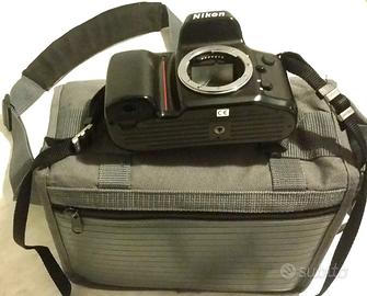 Corpo macchina fotografica Nikon F70 con libretto d'istruzioni.