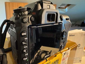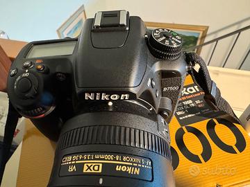 Corpo macchina fotografica Nikon D7500, completa di scatola, caricabatteria e manuale d'uso originali. Numero di scatti 3.730. La macchina non ha nessun segno di usura.