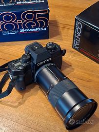 macchina fotografica Contax ST + obiettivo Contax vario sonnarT28-85 + flash Contax TLA30, tutto completo di imballi e documenti importazione ufficiale, materiale perfetto da collezione.