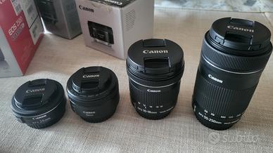 Vendo splendido corredo fotografico Canon in condizioni eccellenti per passaggio a Full Frame. Fotocamera Eos 250d. La piú leggera e compatta reflex di casa Canon. Sensore da 24mp con immagini limpide e chiare. Schermo orientabile touch. Puó fare video in 4k. Numero scatti non riesco a verificare ma di sicuro non piú di 7-8000. Nessun graffio o segno. Pulizia sensore fatta lo scorso anno. Caricabatteria originale. Assieme vendo quattro obiettivi. Efs 24mm fisso. Leggero e compatto.Ottimo per paesaggistica, ritratti e foto notturne. Efs 50mm fisso. Perfetto per ritratti ravvicinati. Con un'apertura di 1.8 é molto luminoso ed è grandioso per fotografare il cielo di notte. Efs 10-18mm. Lente ultragrandangolare ottima per fotografare interni di monumenti e centri storico. Perfetto pure per la paesaggistica. Efs 55-250. Teleobiettivo leggero che consente di fotografare primi piani di animali o di notte la luna. Ottimo per fotografia sportiva. Tutto in condizioni perfette pari al nuovo. Niente graffi o muffe. Attrezzatura perfetta per chi vuole iniziare ad immergersi nel mondo della fotografia. Vendo tutto in blocco a 800€ Preferisco consegna a mano dopo aver visionato tutto. Solo seriamente interessati.