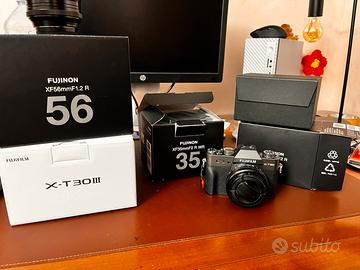 Vendo per passaggio ad altro sistema corredo Fujifilm tenuto con cura maniacale. Tutto il materiale è completo di scatole originali, tappi e paraluce. La macchina ha meno di 500 scatti ed è praticamente indistinguibile dal nuovo.