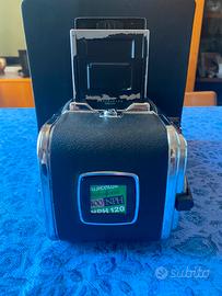 Come da foto,corpo Hasselblad 500 C/M con tracolla,obiettivo Distagon 4/50 con tappi e paraluce originali,2 Magazzini A/12,1 filtro Carl Zeiss Softar II.Tutto perfettamente funzionante,vendo €2000.Regalo valigia rigida porta corredo