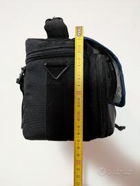 bella e compatta borsa per macchina fotografica, con scomparti e divisorio interno, amovibile e spostabile con velcro. Condizioni ottime, tutte la zip funzionanti al 100%.