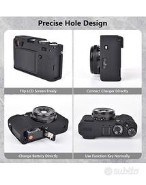 Questa custodia in silicone è stata sviluppata appositamente per la fotocamera FUJI X100 VI. La parte anteriore è aperta e tagliata con precisione, e il modello stato perfettamente progettato per la vera fotocamera FUJI X100 VI e si adatta perfettamente per offrire una protezione efficace. La custodia FUJI X100 VI è realizzata in silicone morbido e robusto con una superficie opaca per una migliore sensazione di presa, morbida e confortevole, è lavabile, estremamente resistente e leggera e non appesantisce ulteriormente la fotocamera. Custodia FUJI X100 VI con design del manico, previene efficacemente la caduta della fotocamera, protegge meglio la fotocamera FUJIFILM X100 VI ed è adatta per l'uso all'aperto.