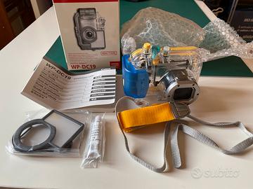 custodia impermeabile per fotocamera digitale Canon Mod WP-DC19 Confezione originale contenente: custodia impermeabile, stracca, istruzioni, tubetto silicone, diffusore