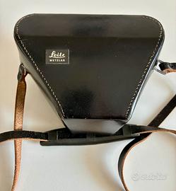Custodia "borsa pronto" vintage in pelle nera prodotta da Leitz Wetzlar, specificamente progettata per le fotocamere del sistema Leicaflex.Questa custodia è caratterizzata dalla sua forma trapezoidale distintiva ed è compatibile con diversi modelli della serie, tra cui la Leicaflex originale (Mark I e II), la SL e la SL2. Esistono varianti molto simili anche per la serie Leica M (come la M4), ma la sagoma più profonda di questo modello suggerisce che sia destinata a ospitare i corpi macchina reflex. Marca: Leitz Wetzlar (Leica). Materiale: Pelle nera di alta qualità con rivestimento interno protettivo. Custodia "Ever-Ready Case" (ERC), che consente di utilizzare la fotocamera senza rimuoverla completamente dalla borsa. Include tipicamente una tracolla in pelle e l'iconico logo rettangolare "Leitz Wetzlar" sul frontale.