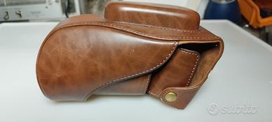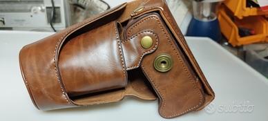 custodia macchina fotografica vintage, in pelle, nuova. con tracolla.