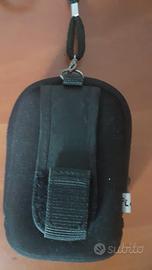 Custodia per macchina fotografica digitale di piccole dimensioni. Marca" Reporter" .Già utilizzata. In buone condizioni. Dimensioni: 12x8x4,5 cm.Con imbottitura antiurto taschini interni per schede Sd . Laccetto lungo staccabile per poterla appendere al collo o a tracolla. Gancio con velcro per essere attaccata alla cintura.