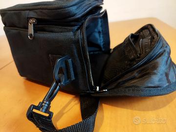 Custodia porta macchina fotografica, ottima per reflex o cmq macchine con obiettivo medio. Due ulteriori tasche porta oggetti, tracolla e passanti per apprendimento in cintura. Marca Bilora. Ottime condizioni.