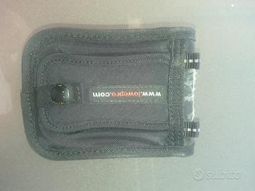 Custodia per fotocamera digitale compatta. Colore nero, con clip per portare la fotocamera in vita, con 2 scompartimenti, 1 per la fotocamera e 1 altro per la batteria o memoria di riserva. Comoda, leggera, pratica. Vendo per inutilizzo