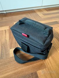 Custodia imbottita protettiva per macchina fotografica. Adatta a macchine fotografiche profonde fino a 13cm. Custodia in perfette condizioni completa di tracolla regolabile.