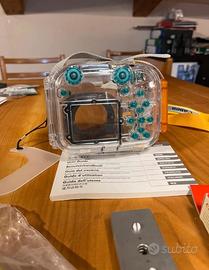 Custodia impermeabile Canon WP-DC11 per Canon PowerShot G7 usata pochissimo e tenuta in perfette condizioni, completa di accessori. Questa è una custodia subacquea trasparente e resistente per la tua fotocamera compatta Canon G15. L'ideale fino a una profondità di 130' (40 m), basta inserire la fotocamera e chiudere l'alloggiamento tramite la chiusura a scatto. II WP-DC11 è configurato con controlli meccanici che consentono l'accesso alle funzioni della fotocamera. È munita di scatola e accessori originali come nuovi.