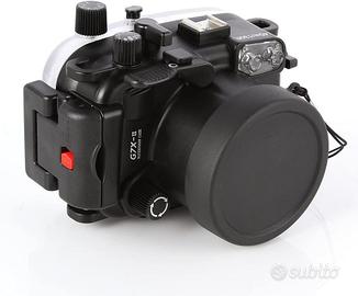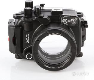 Vendo custodia subacquea perfettamente compatibile con fotocamera Canon G7X Mark II marca Puluz. Utilizzata per 4 anni senza problemi. Poi si è rotto il meccanismo di chiusura mentre ero al mare per lavoro e ho dovuto acquistarne in fretta un'altra uguale. Una volta tornato è stato sostituito il meccanismo di chiusura (che quindi è nuovo) e mi ritrovo ora due custodie, pertanto una la rivendo. Nessun problema finora in immersione, ha sempre fatto il suo dovere. Non è originale Canon, ma ha quasi tutti i tasti della fotocamera riportati esternamente, pertanto è sempre stata funzionale. Usata per foto in apnea fino a 20 metri di profondità. Acquistata per 250€, rivendo a 125€.
