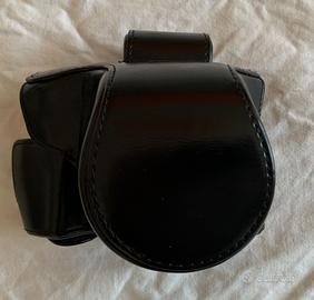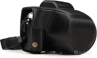 Custodia vintage per Olympus OM-D E-M10 in pelle nera per proteggere la mirrorless, fondello con copertura superiore apribile per poter utilizzare la macchina