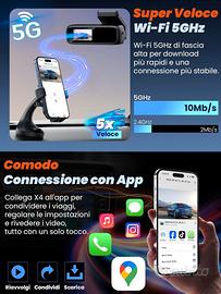 🚕 Wi-Fi 5GHz Integrato + Controllo Tramite App — Grazie alla tecnologia Wi-Fi a 5 GHz, la velocità di trasferimento è fino a 5 volte superiore rispetto ai sistemi tradizionali 2,4 GHz. Connettiti all’app dedicata per guardare filmati in diretta, modificare le impostazioni, scaricare e modificare video o condividerli subito sui social media come YouTube, Facebook e Twitter con un semplice tocco.