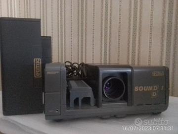 Proiettore sonoro per diapositive, marca EUMIG, 5x5 cm , 250 watt, autofocus. Dotato di piccolo schermo, incorporato nel vano di chiusura superiore. Colore nero, usato pochissimo, ottimo stato. Vintage: acquistato nel 1986, tramite la rivista Fotografare. A chi acquista in regalo macchinetta fotografica FERRANIA, anni'60, da collezione.