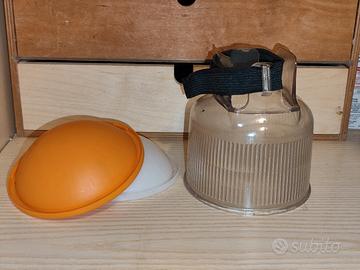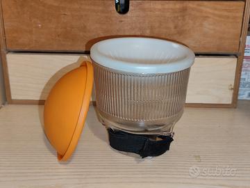 diffusore in gomma trasparente con tappo bianco e arancione per luce calda, si adatta a tutti i flash da slitta con parabola rettangolare.