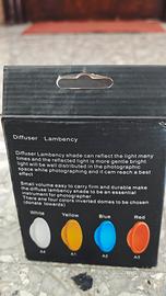Diffusore per flash Lambency shade in confezione originale, con diffusore bianco.