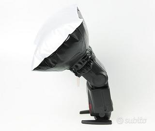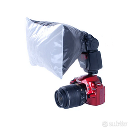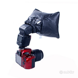Adattabile a tutti i tipi di flash esterni. Essendo gonfiabile diventa piccolo e discreto, facilmente riponibile nella borsa fotografica.