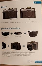Presenti istruzioni in lingua inglese, due lenti aggiuntive, cavo di ricarica e connessione al PC.