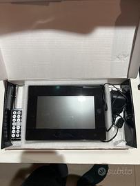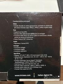 Cornice fotografica digitale con varie funzioni quali: riproduzione audio, funzione orologio, sveglia, calendario. Supporta SD ed SDHC, MMC e MS.
